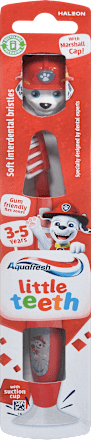 Aquafresh zobna ščetka Little Teeth nežno očisti otroške zobe. Primerna je za otroke od 3. do 5. leta starosti. Gumijast in ergonomsko oblikovan ročaj ščetke zagotavlja enostavno držanje, dobro upravljanje in varnost pri čiščenju. Glava ščetke se zelo dobro prilagaja otroškim zobkom in tako pripomore k popolnemu rezultatu.