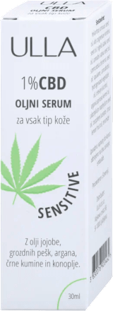 Ulla oljni serum 1% CBD sensitive je serum, ki kožo vlaži in obnavlja, hkrati pa jo ščiti pred zunanjimi vplivi. Njegova formulacija vsebuje olja jojobe, grozdnih pešk, argana, črne kumine in konoplje. Kombinacija olj in skvalana kožo napolni s potrebnimi maščobami, vitamini in minerali, brez da bi pri tem mašila pore, medtem ko ceramidi kot naravni gradniki kože dopolnjujejo, gladijo in povečujejo njeno hidracijo. Serum je primeren za vsak tip kože.